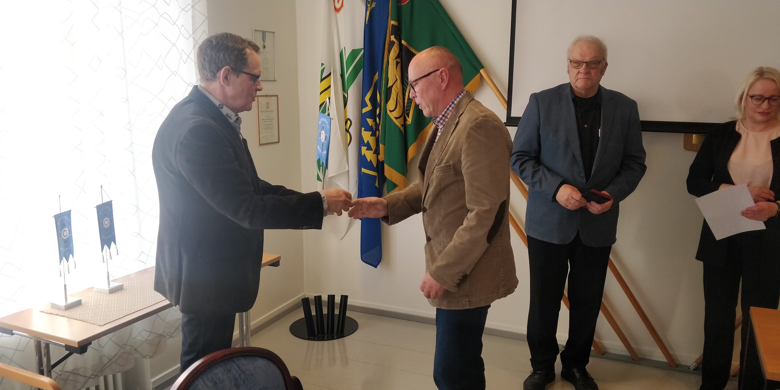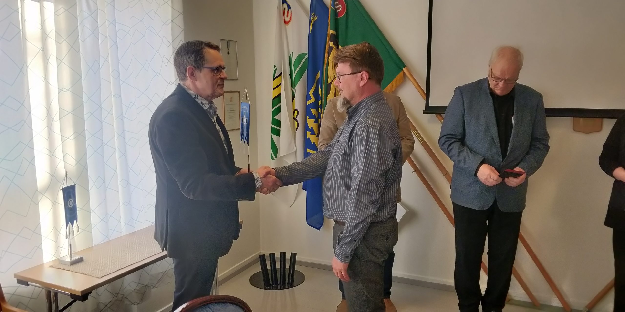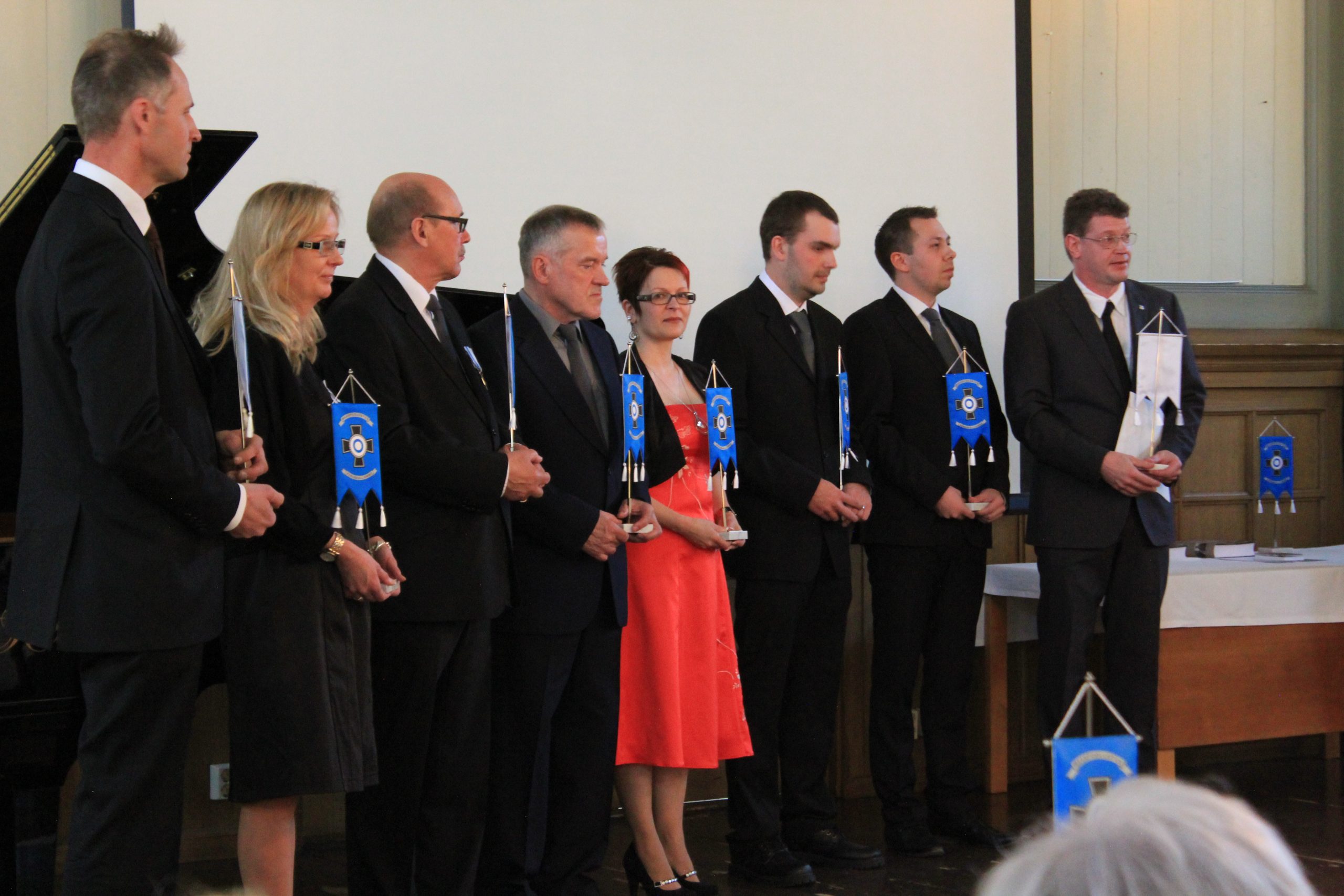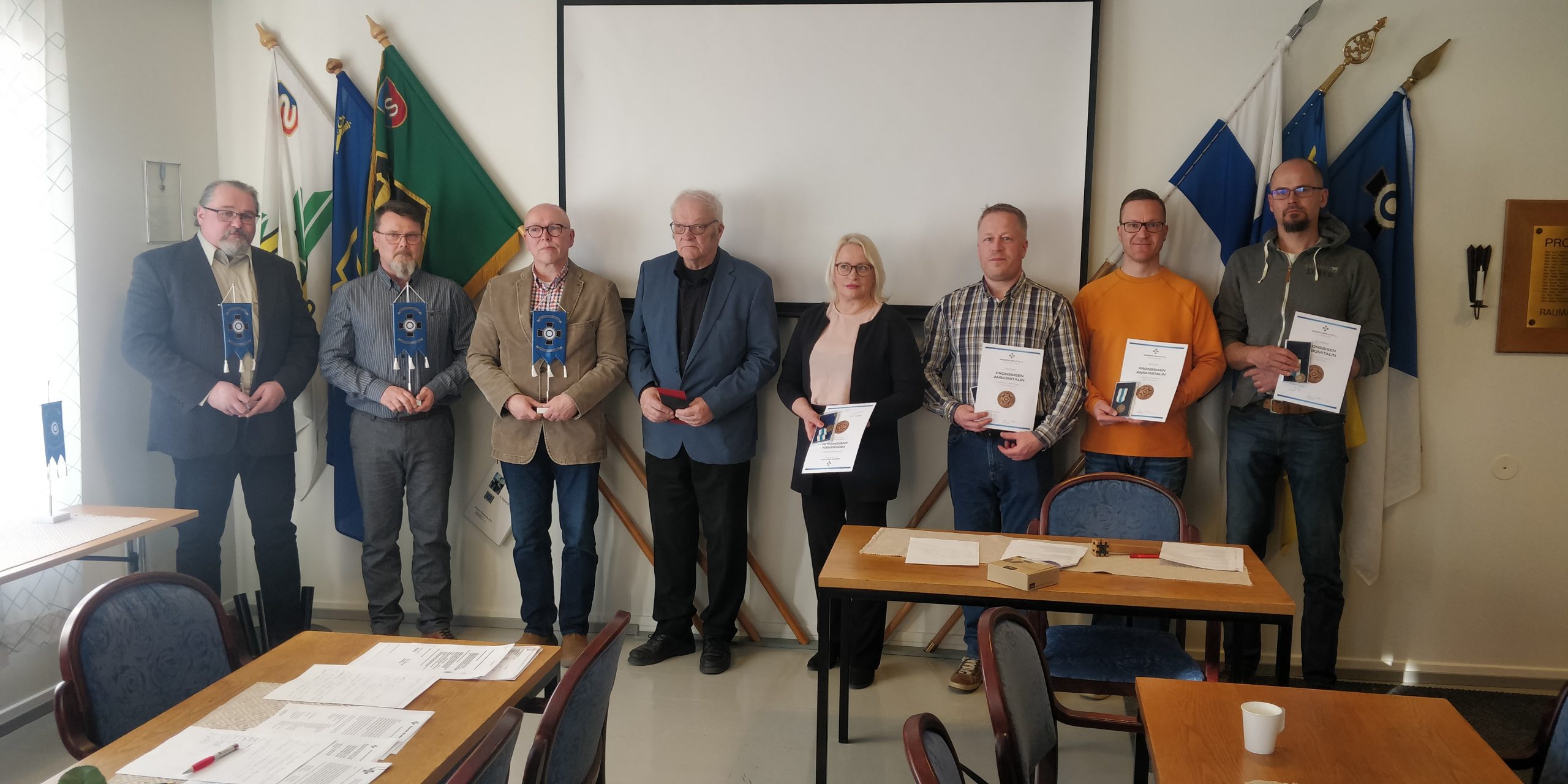 Palkitut, kuvasta puuttuu liiton standardin saanut Seppo Kulmala